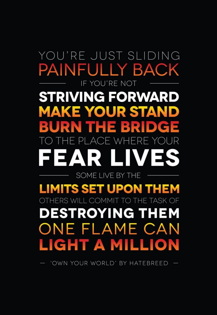 Trainer Bob is very excited to be seeing one of his heavy metal mentors, the band Hatebreed. Their music is brutal, but also one of the most inspirational forces in music for the past 25 years. They take the negativity and anger of humanity and dare to positively overcome those weaknesses. We have them quoted at the studio, but also wanted to share some lyrics of the song I discovered them with, ‘I Will Be Heard’. I never realized it would relate so much to our health…